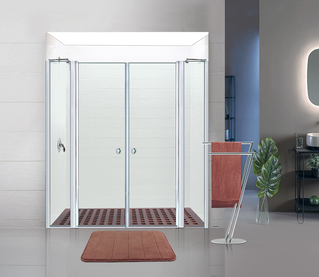 מקלחון חזית מרהיב עם שילוב של שני חלקים קבועים ושתי דלתות זכוכית מחוסמת שקופה, המעניקים מראה אלגנטי ויוקרתי לכל חדר רחצה. הפרזול בגוון ניקל מבריק מוסיף תחושת ניקיון וסטייל מודרני, בעוד המבנה הרחב והמאוזן מאפשר כניסה נוחה ושימוש יומיומי נעים. עמיד לאורך שנים, קל לניקוי ומתאים במיוחד למי שמחפש פתרון מרווח ואסתטי ללא פשרות.